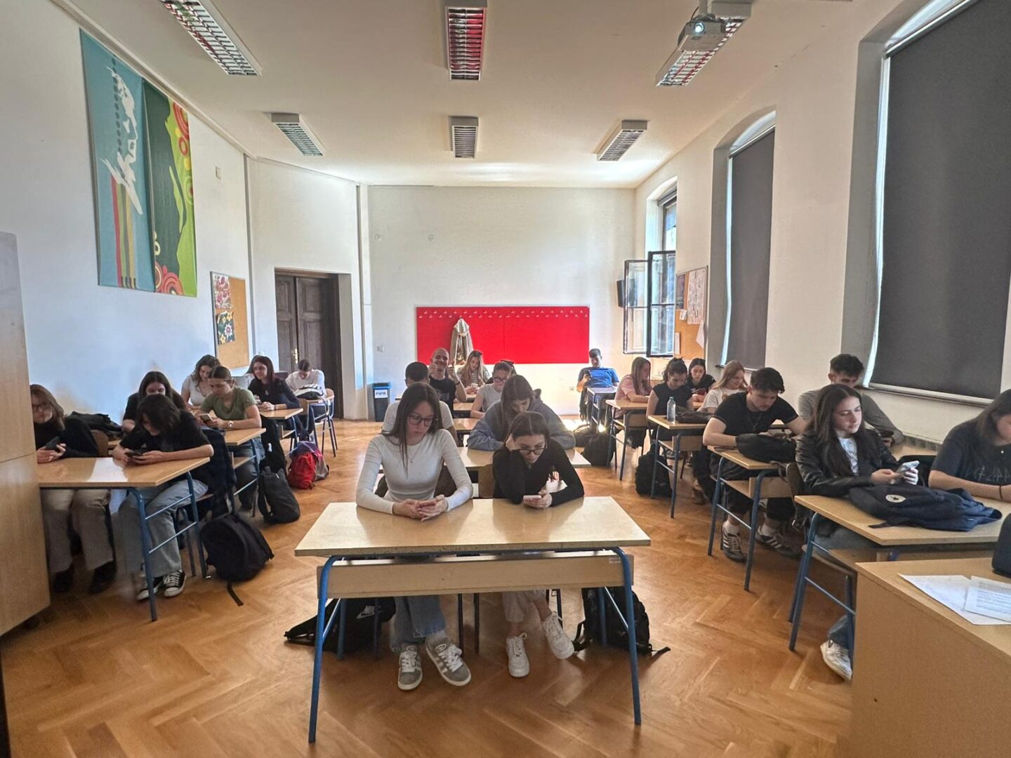 U sklopu projekta ,,Bez filtera” naš profesor Zvonimir Parać 7. travnja održao je predavanje ,,Kako vijesti mijenjaju i oblikuju društvenu stvarnost?” za zainteresirane učenike prvih i trećih razreda. U predavanju se zajedno s učenicima posvetio proučavanju i razumijevanju određenih arhetipa vijesti koje se provlače medijskim prostorom. Na primjerima stvarnih vijesti iz medija razgovaralo se o tome zašto nas često emotivno ne dotiču vijesti o broju poginulih i stradalih u ratovima u inozemstvu, koja je funkcija vijesti o slavnim osobama, koja je povezanost katarze i vijesti o različitim oblicima nesreća, kako se uopće snaći u svijetu u kojem smo preplavljeni vijestima. Cilj radionice bio je potaknuti učenike na aktivno i kritičko promišljanje koje je danas izuzetno potrebno.