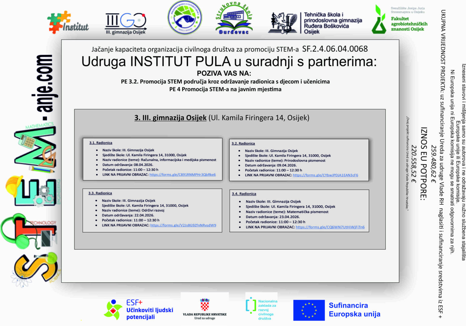 Poziv na okrugli stol i predavanje povodom Erasmus dana! U sklopu obilježavanja Erasmus dana u III. gimnaziji Osijek, pozivamo vas na: Okrugli stol „Erasmus 101 – pitanja i odgovori“voditeljica:...
